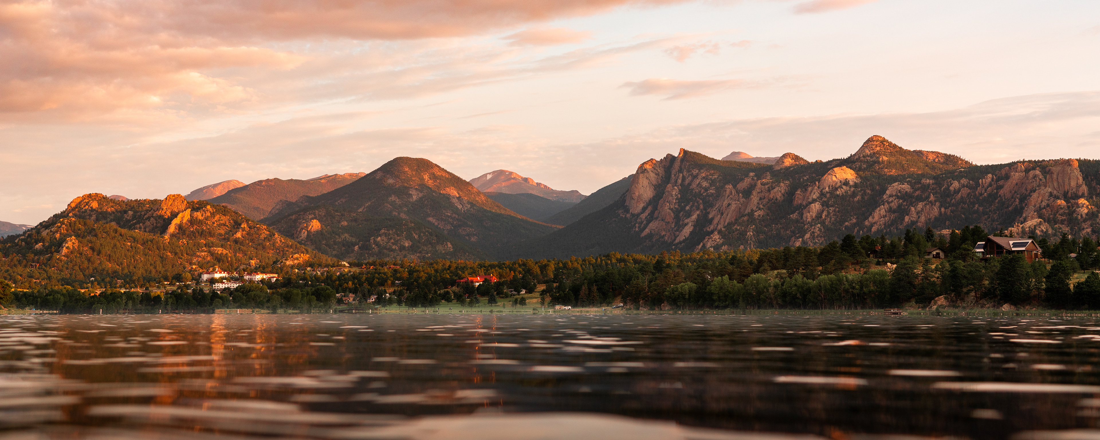 The sun breaks the over Lake Estes, illuminating the mountain range. Light kisses the tips of the peaks as a warmth is brought in to the morning in the mountains. The clouds above glow in a beautiful soft peach color that brings a mystic feeling to the landscape. Estes park has always been incredible to me, a gorgeous tucked away town, around 20 minutes from the Rocky Mountain National Park. The town has served as a base of operations for me, when I'm in Colorado. This piece serves as my tribute to the town, showcasing its most beautiful features. The lake, the massive stone faces, the Stanley Hotel, the evergreen trees, and the esoteric clouds all combine into one dreamlike location.